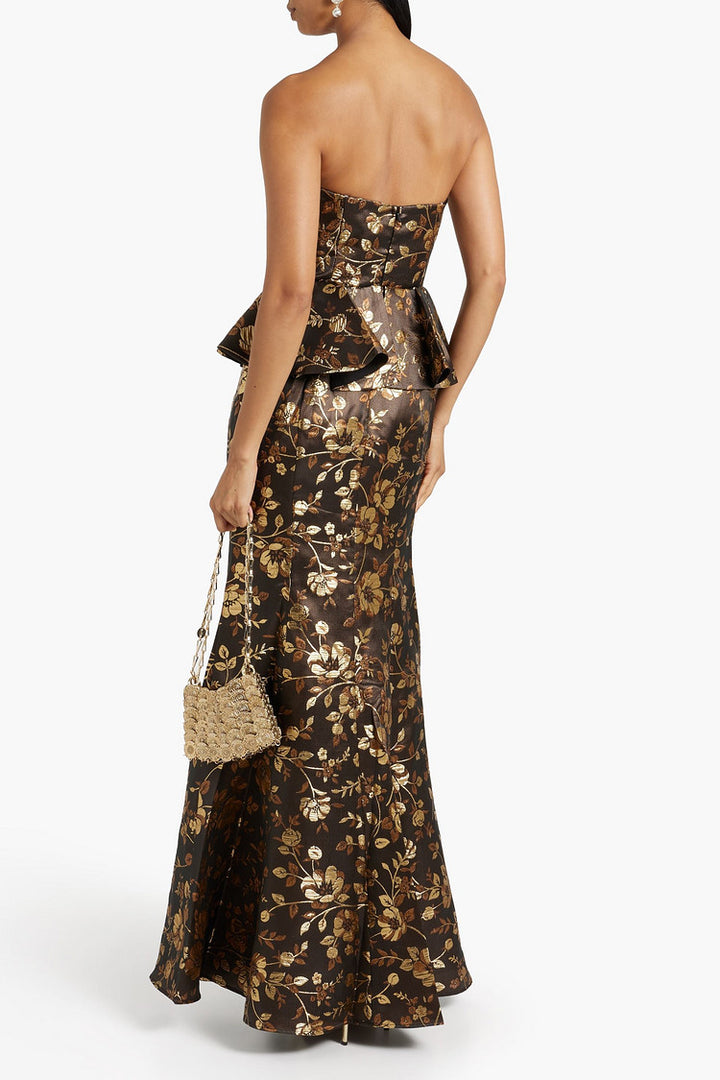 Marchesa Notte - Strapless Metallic Brocade Gown